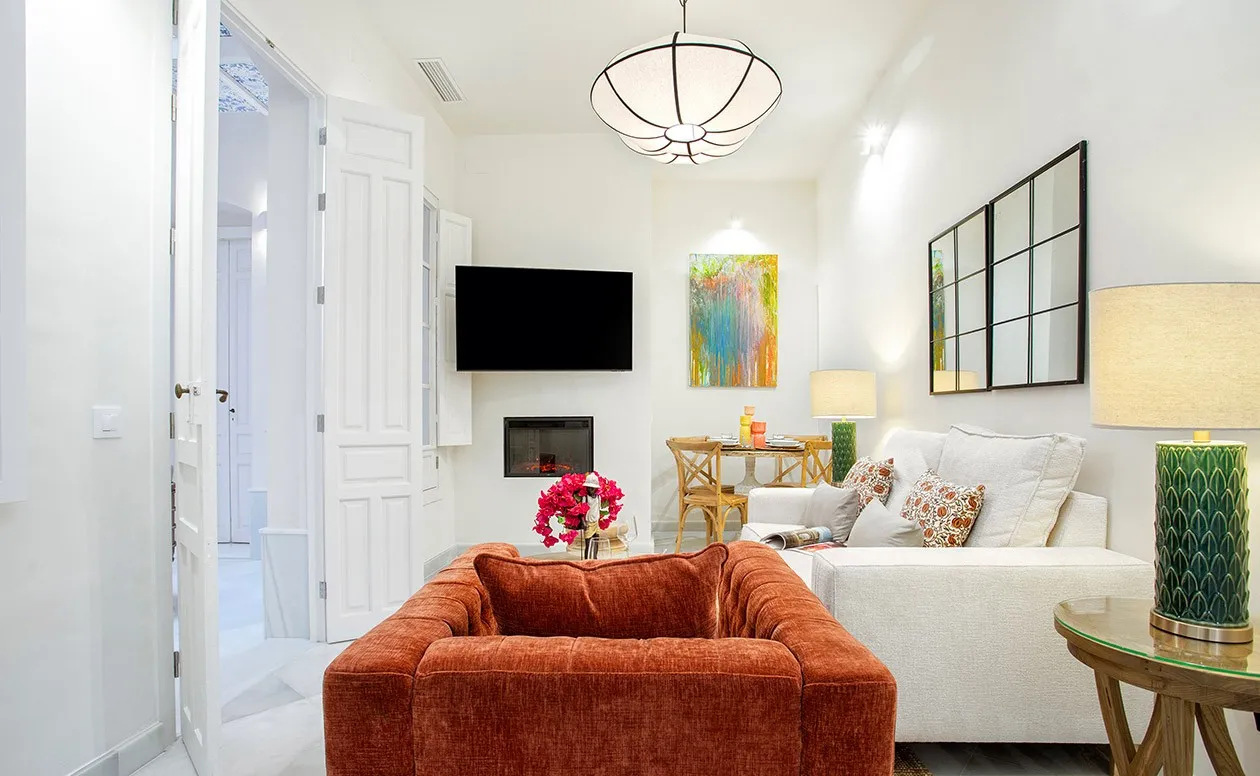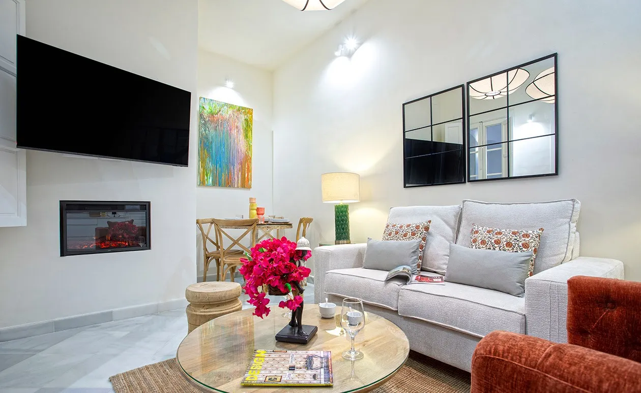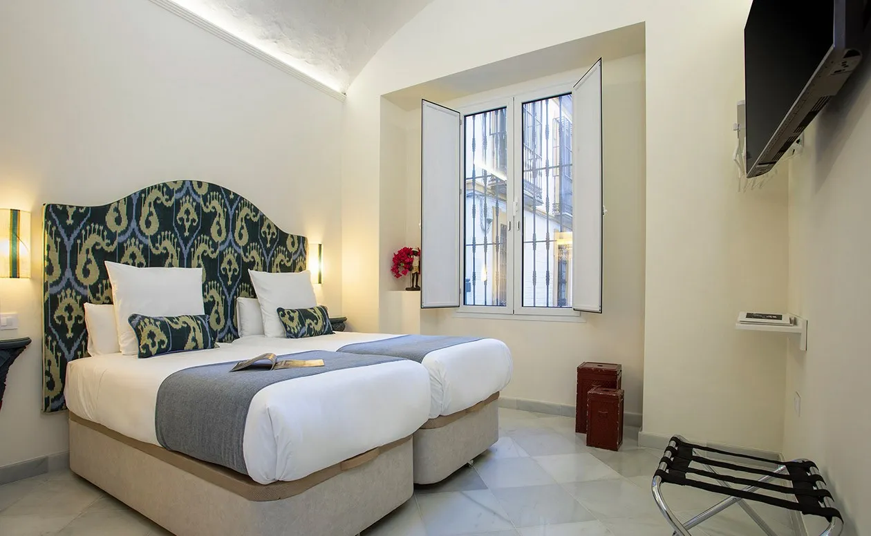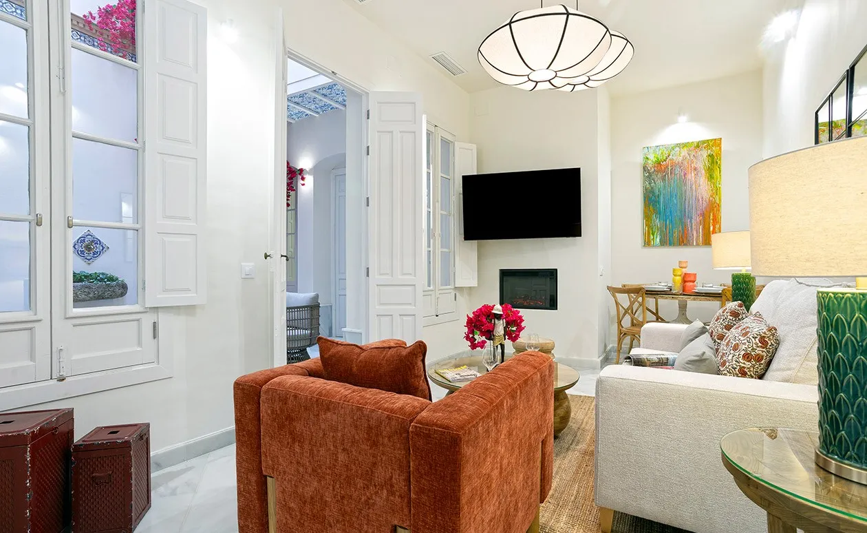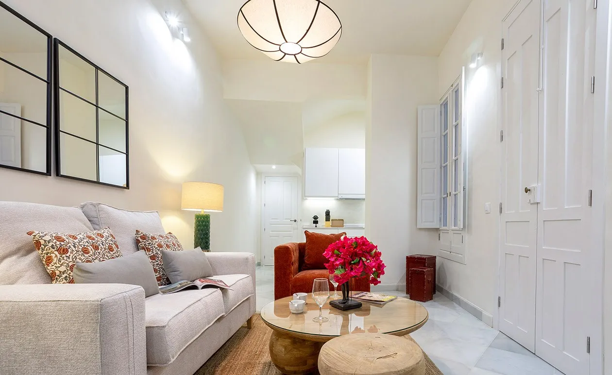 Este elegante y moderno apartamento de dos dormitorios y dos baños se encuentra en un edificio recientemente renovado y ofrece un ambiente cálido y confortable en pleno corazón de Sevilla. Al entrar, un encantador patio interior andaluz le da la bienvenida. A la derecha se encuentra el salón, equipado con una Smart TV, un cómodo sofá y una mesa de comedor para cuatro personas. Junto a él, la cocina americana está totalmente equipada. Al final del pasillo se encuentra el primer dormitorio, con dos camas individuales de 90 cm, una Smart TV y un magnífico baño en suite. A la izquierda del patio se encuentra el segundo dormitorio, espacioso y también equipado con dos camas individuales de 90 cm, una Smart TV y un precioso baño en suite, oculto tras puertas de espejo. Su inmejorable ubicación le permite llegar a los principales lugares de interés de la ciudad, como el Museo de Bellas Artes y la Catedral, en tan solo unos minutos a pie. Además, el histórico barrio de San Vicente ofrece una excelente selección de bares de tapas y restaurantes