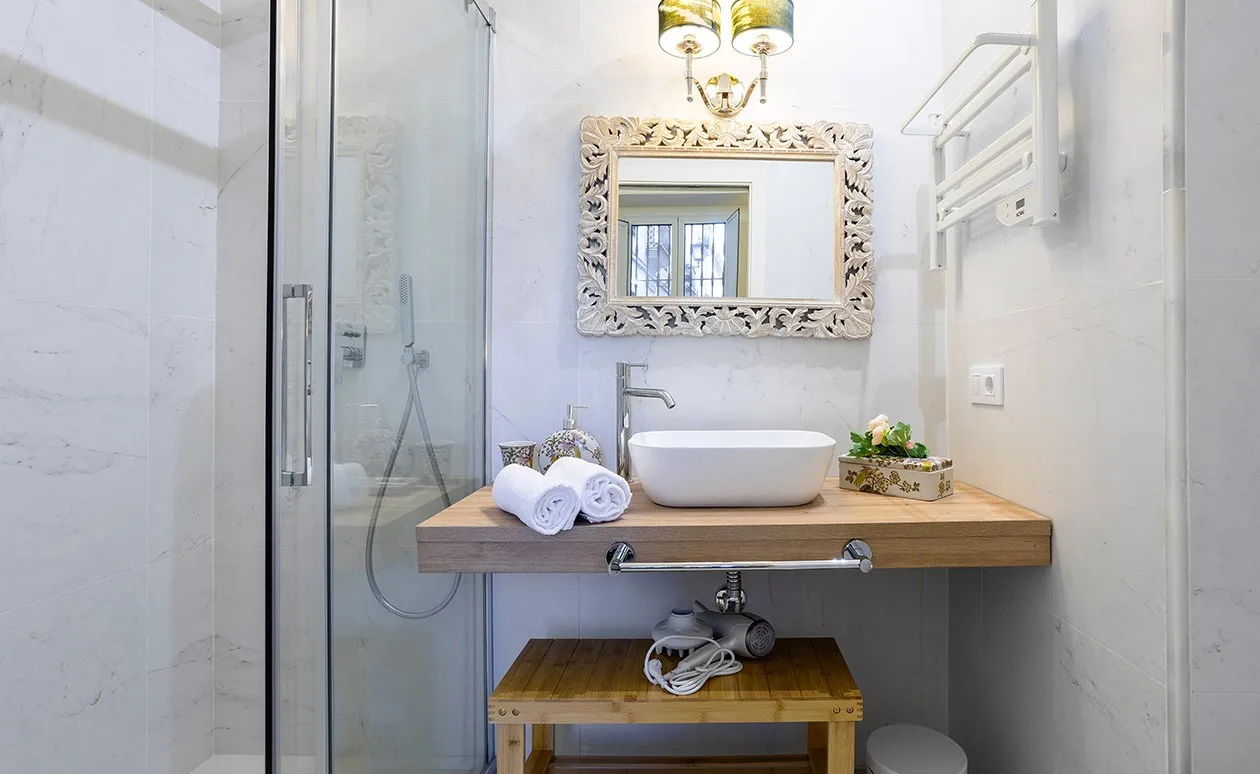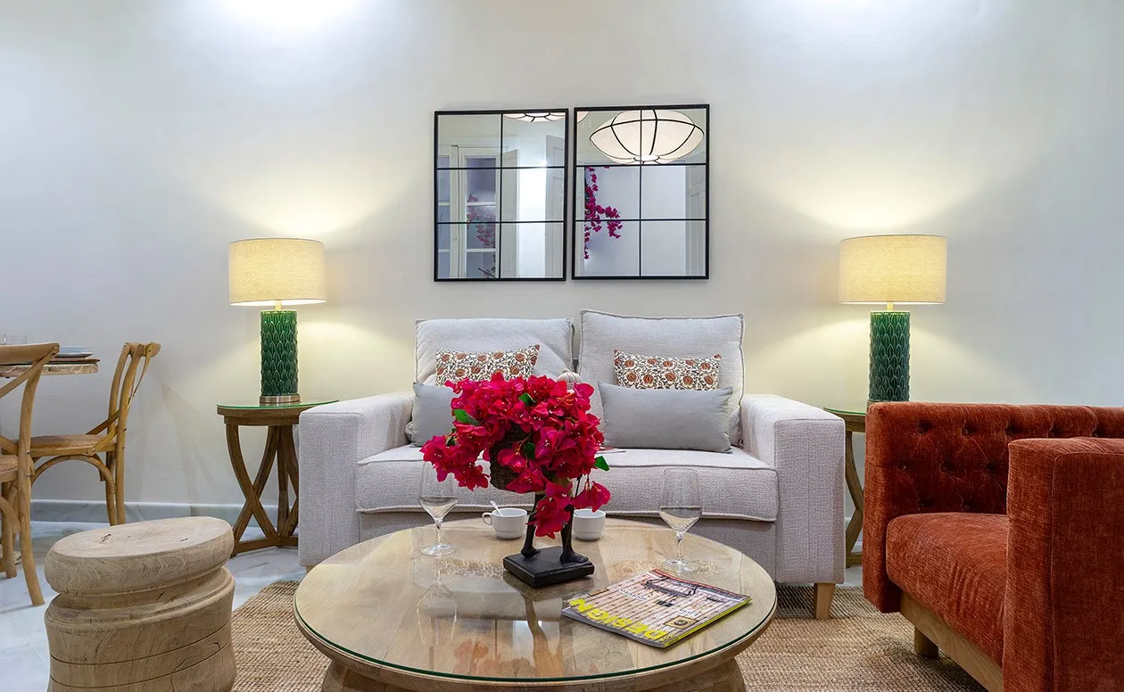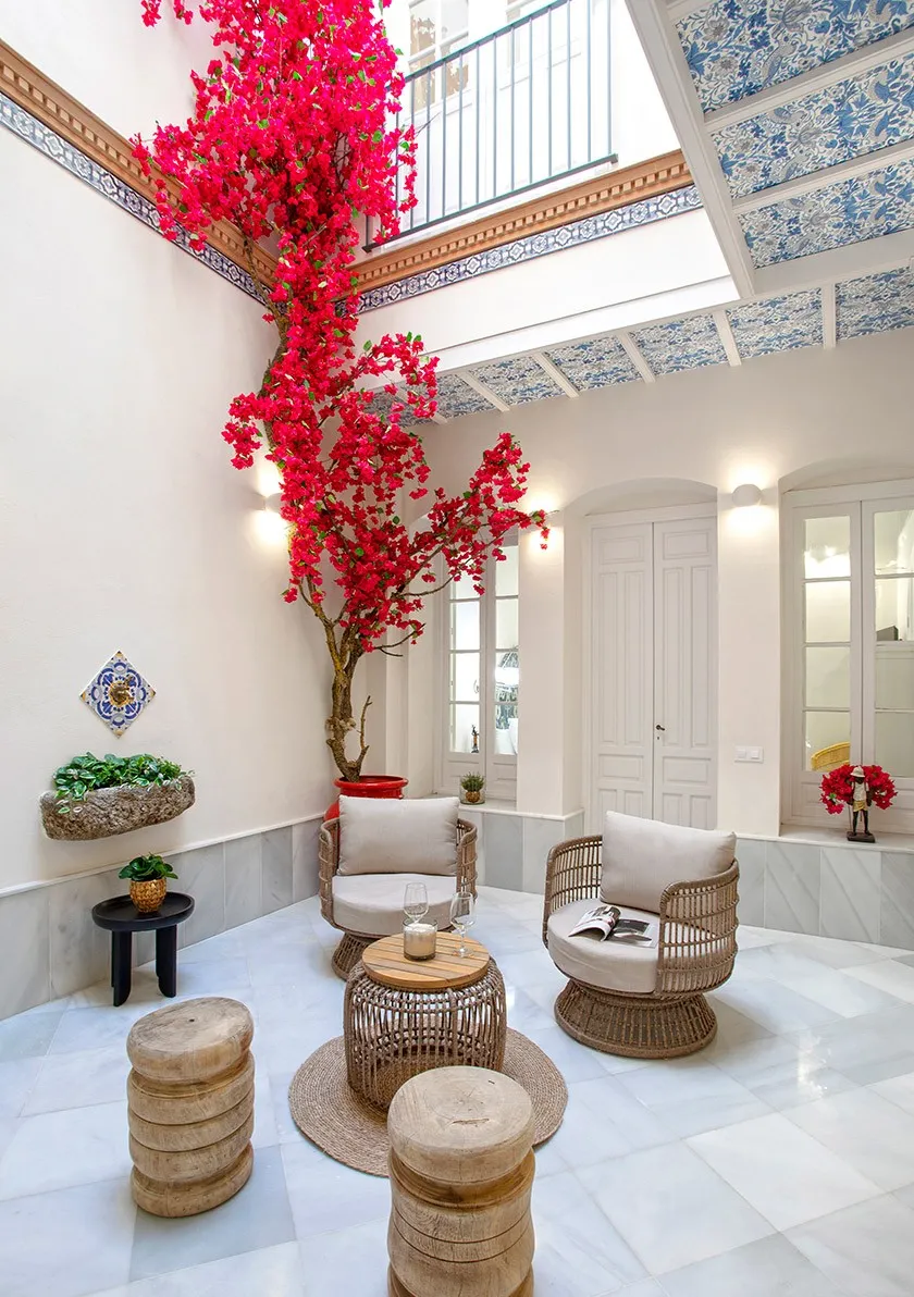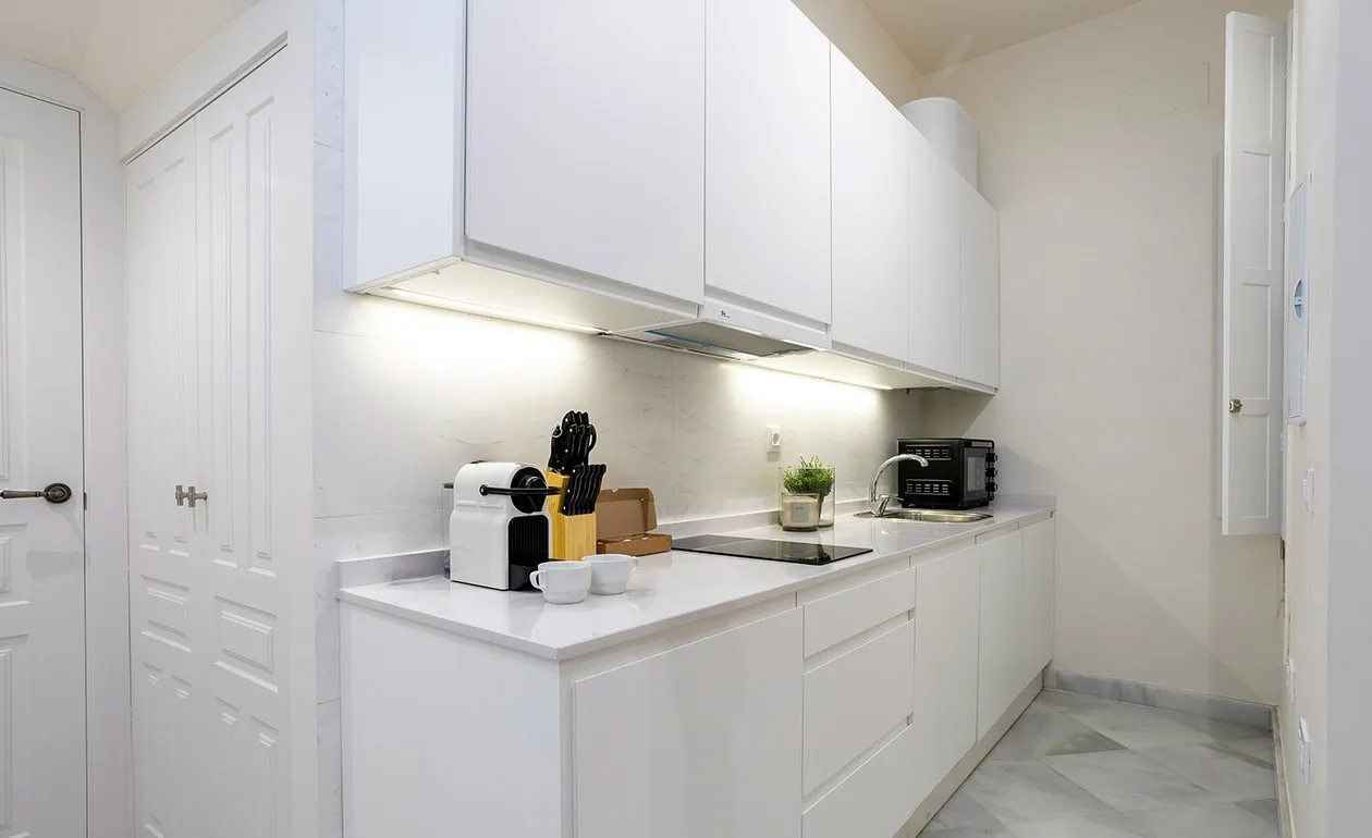 Este elegante y moderno apartamento de dos dormitorios y dos baños se encuentra en un edificio recientemente renovado y ofrece un ambiente cálido y confortable en pleno corazón de Sevilla. Al entrar, un encantador patio interior andaluz le da la bienvenida. A la derecha se encuentra el salón, equipado con una Smart TV, un cómodo sofá y una mesa de comedor para cuatro personas. Junto a él, la cocina americana está totalmente equipada. Al final del pasillo se encuentra el primer dormitorio, con dos camas individuales de 90 cm, una Smart TV y un magnífico baño en suite. A la izquierda del patio se encuentra el segundo dormitorio, espacioso y también equipado con dos camas individuales de 90 cm, una Smart TV y un precioso baño en suite, oculto tras puertas de espejo. Su inmejorable ubicación le permite llegar a los principales lugares de interés de la ciudad, como el Museo de Bellas Artes y la Catedral, en tan solo unos minutos a pie. Además, el histórico barrio de San Vicente ofrece una excelente selección de bares de tapas y restaurantes